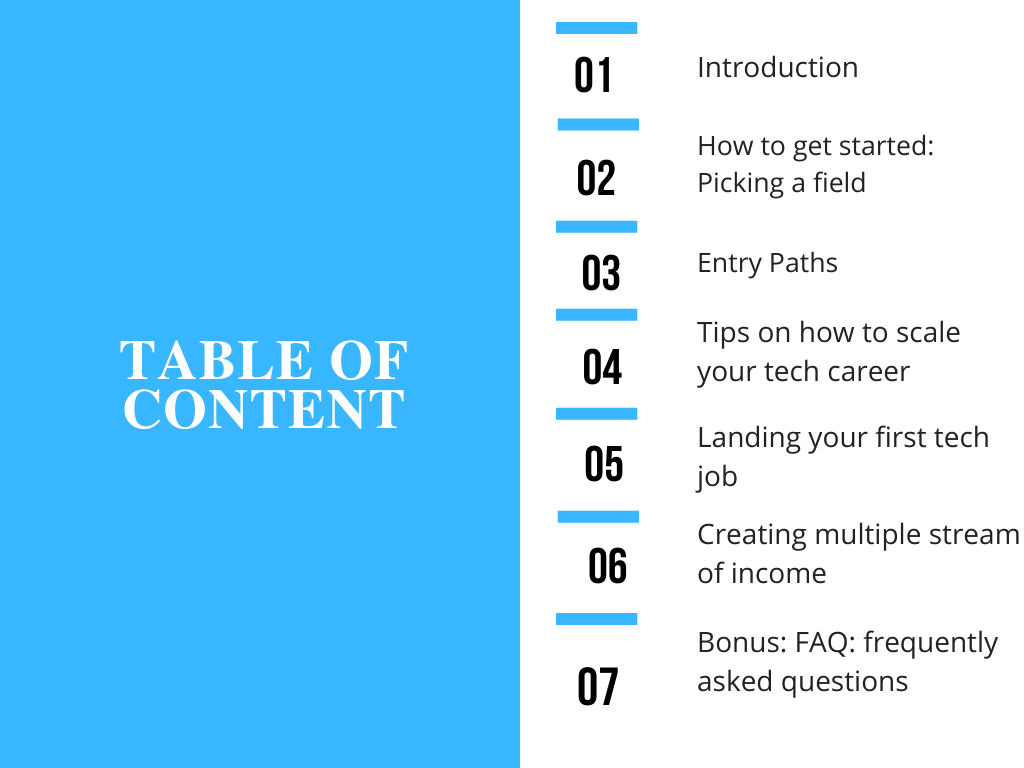 Transitioning into tech from another field can be pretty confusing at first; I can say this because I transitioned from the accounting and finance field to working as a Front-end Developer. Not to worry, this book will help you figure out how to transition to tech smoothly and build a successful career.